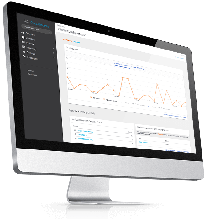 Die Lösung von Cisco lässt sich sehr einfach in die bestehende Netzwerk-Infrastruktur einbauen und der administrative Aufwand für den Betrieb ist kaum nennenswert. Cisco Umbrella verschafft Transparenz, erhöht den Sicherheitsgrad des Firmennetzwerks und kann, unabhängig vom Standort, ohne IT-Spezialwissen administiert werden. Businesskritische Internetverbindungen werden zu keiner Zeit durch den zusätzlichen Schutz beeinträchtigt. Je nach Version der Lösung ist auch ein Schutz von mobilen Geräten möglich, selbst wenn sich diese ausserhalb des lokalen Netzwerks befinden.